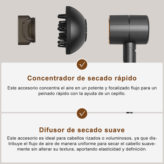 Secador de pelo iónico profesional Qimmaol Velofold con concentrador y difusor [Ultraligero / Tamaño de la palma / Plegable / 250 g]